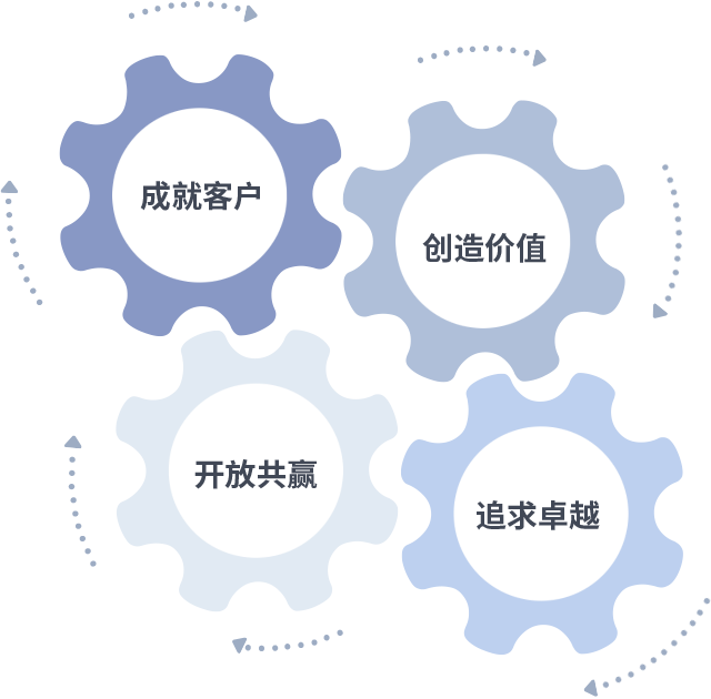 成就客户是一切决策的出发点,创造价值是衡量所有工作的标准,追求卓越是好博做事做人的态度,开放共赢是好博的格局也是最终的结果。价值观的齿轮环环相扣,推动着组织里的每个人不断向前。